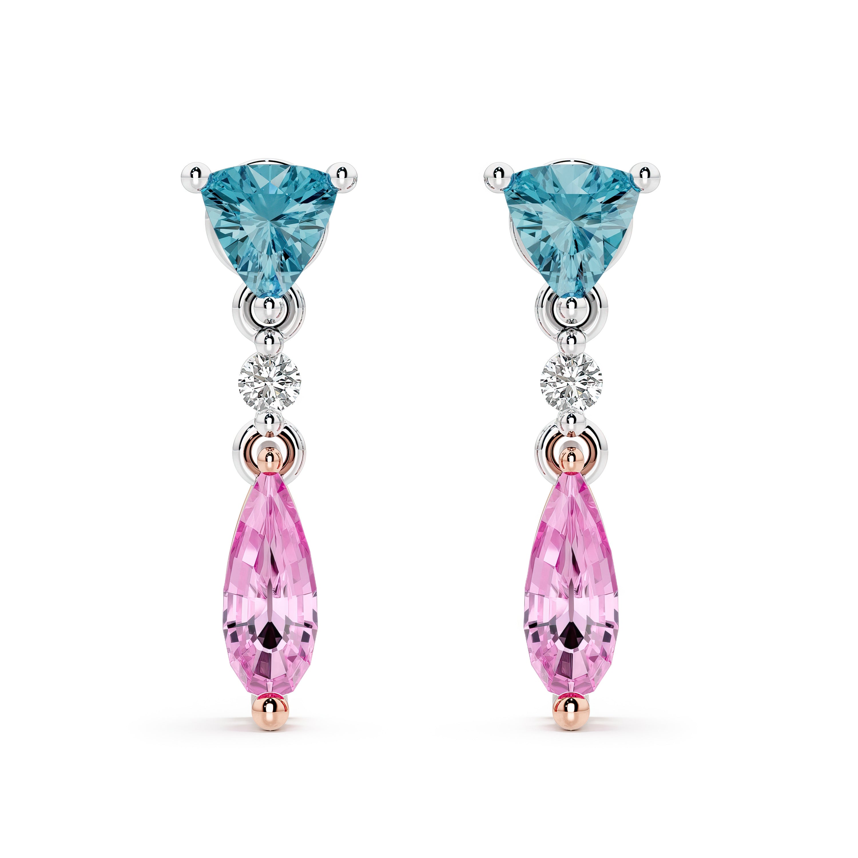 18K White and Rose Gold, Aquamarine, Pink Topaz, and Natural Diamonds