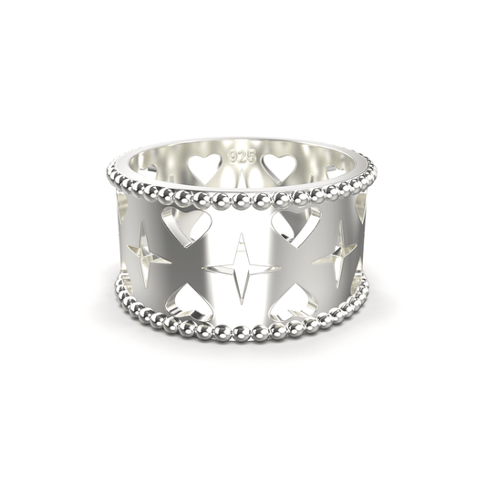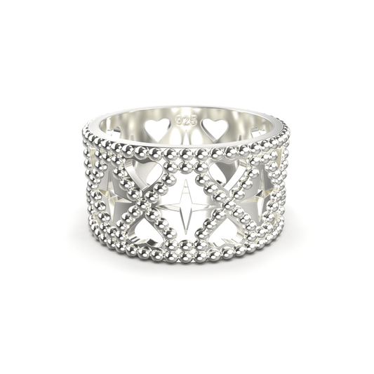 Star of My Heart Sterling Silver Beaded Cuff Bracelet